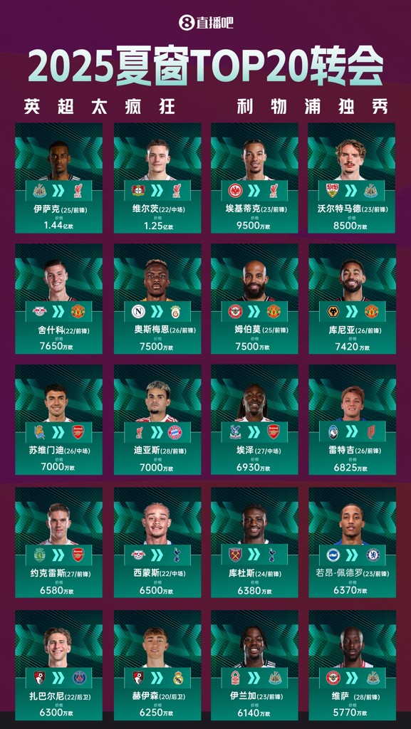 五大联赛8月份开赛至今,普遍进行了6-8轮较量,新援得到了磨合与初步检验。夏窗top20转会中,性价比最高的是谁?最大水货又是谁?欢迎在评论区说出你的答案。